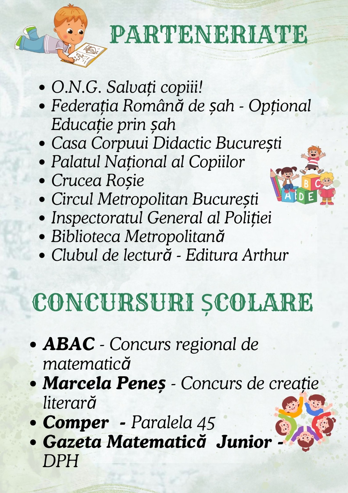 Veniți să cunoașteți echipa noastră, să explorați sălile de clasă și să simțiți atmosfera unei școli în care fiecare copil contează!